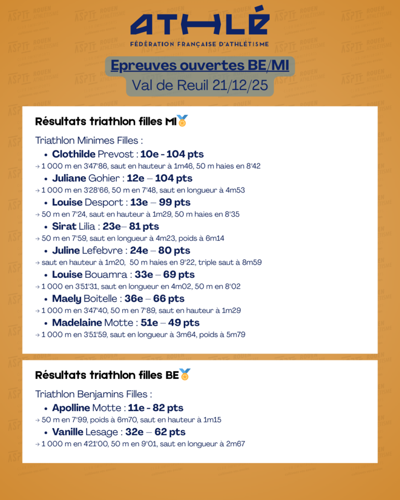 Les épreuves BE MI à Val de Reuil le 21 décembre 2025 Publié le 9 janvier 2026Auteur/autrice aspttrouenathle Les photos de la journée dans cet album photos