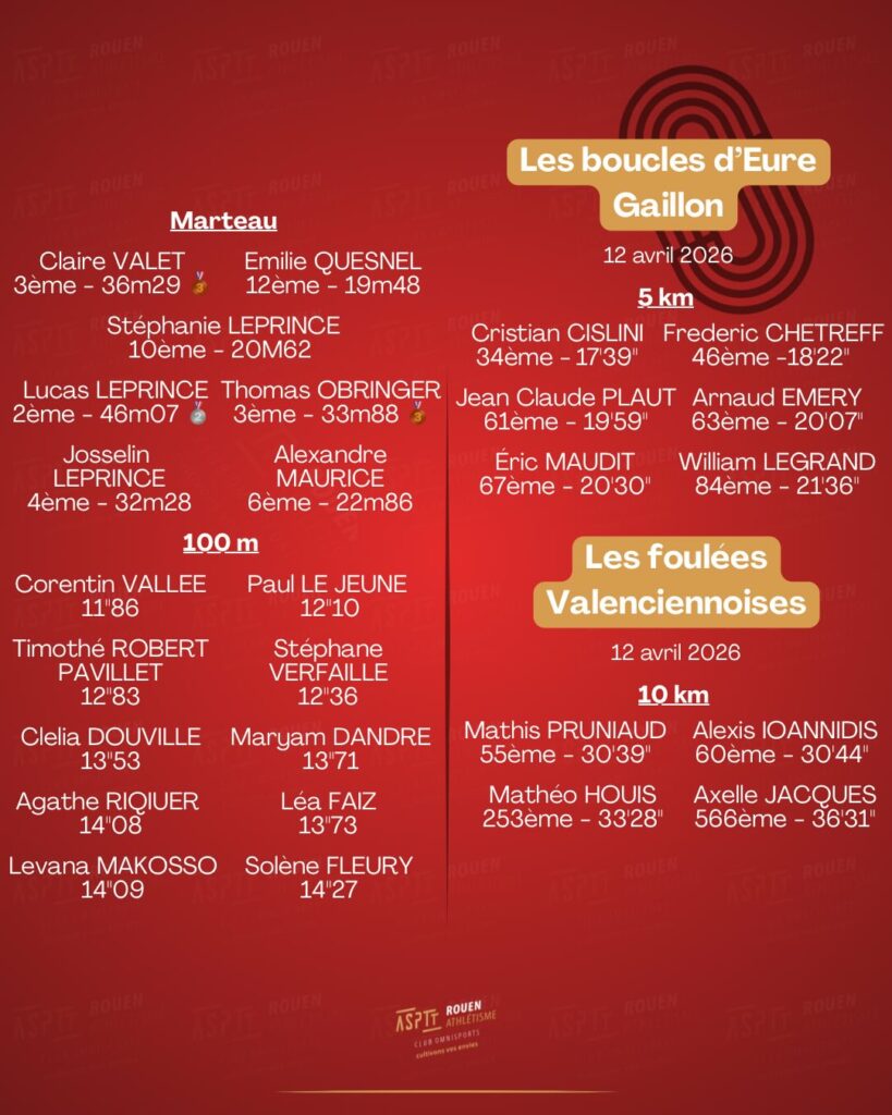 Trombinoscope de l’ASPTT Rouen Athlétisme
